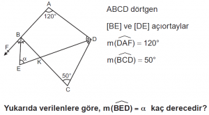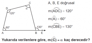 Dörtgenler konusu 10. Sınıf Matematik dersi test çöz sayfasındasın. Dörtgenler Konusu test için her sorunun 1 dakika süresi vardır. Aşağıdaki Dörtgenler konusu 10. Sınıf Matematik dersi testini belirtilen süre içerisinde çözdükten sonra en aşağıda bulunan "cevapları kontrol et" butonuna tıklayarak Dörtgenler Konusunda yaptığın doğru - yanlış sayısı, cevaplar ve aldığın puanı görebilirsin.