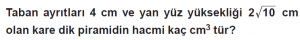 10. Sınıf Matematik: Katı Cisimler (Dik Piramit) TEST - 1