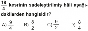 Doğru Cevap: "D" İki kesrin de en sade hâlleri aynı kesirdir. Soru Açıklaması