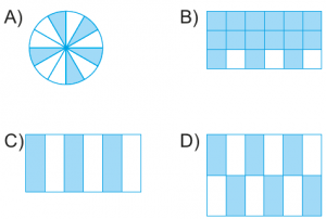 Yukarıda modellenen kesirlerden hangisi diğerlerine denk değildir?