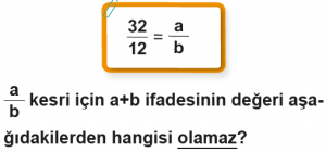 Yukarıda verilen kesirler yarıma denk olduğuna göre a + b ifadesinin değeri kaçtır?