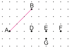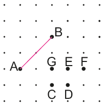 Noktalı zeminde verilen AB doğru parçasının B noktasının 3 birim sağında 4 birim aşağısında olan C noktası; hangi nokta ile birleştirilirse, AB doğru parçasına paralel doğru parçası elde edilmiş olur?