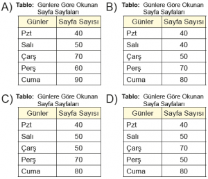 Doğru Cevap: "D" İlke her gün bir önceki güne göre kitap okuma sayfasını artırmıştır. Soru Açıklaması