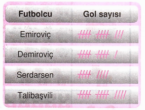 Yukarıda bir ligte en iyi oyuncular ve attıkları gol sayısı verilmiştir.