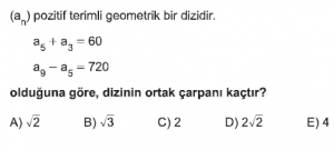 Diziler konusu AYT Matematik dersi test çöz sayfasındasın. Diziler Konusu test için her sorunun 1 dakika süresi vardır. Aşağıdaki Diziler konusu AYT Matematik dersi testini belirtilen süre içerisinde çözdükten sonra en aşağıda bulunan "cevapları kontrol et" butonuna tıklayarak Diziler Konusunda yaptığın doğru - yanlış sayısı, cevaplar ve aldığın puanı görebilirsin.