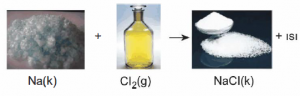 2 gazı ile reaksiyonu ve açığa çıkan NaCI tuzu resimlerle ifade edilmiştir.