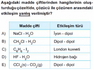 2- Çözünen ile çözücü arasında oluşan etkileşim, çözünenin kendi molekülleri arasındaki etkileşimden kuvvetliyse çözünme gerçekleşir.